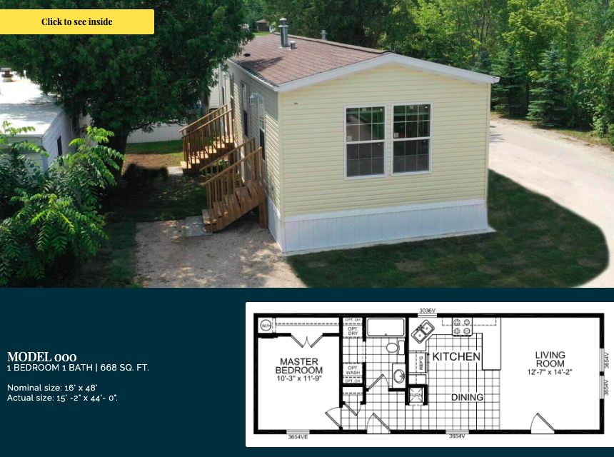 Land lease fees are $630/month plus applicable property taxes, water, sewer, maintenance etc. Please note that there may be other charges which vary based on site and municipality. Prices are subject to change.
